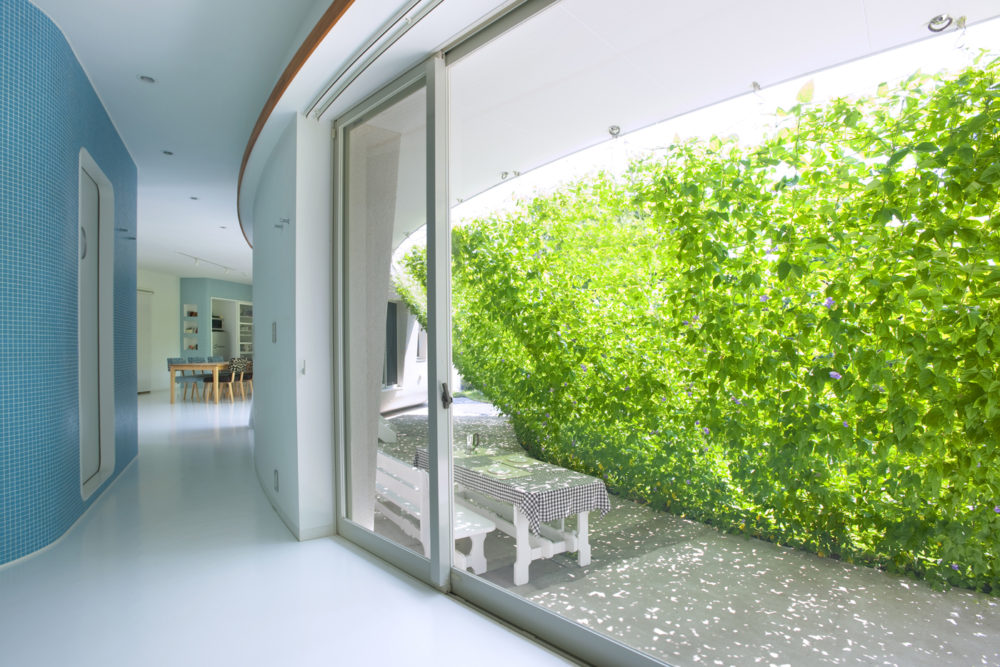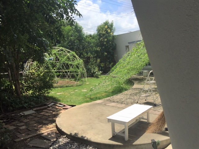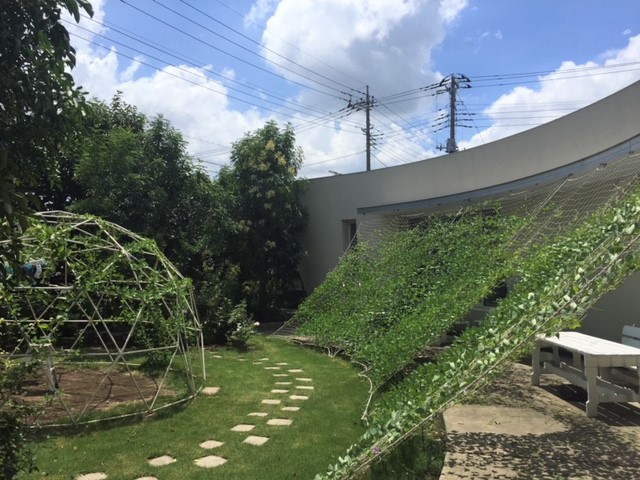 今年のミドリノカーテンはたったの2株でスクリーンいっぱいになりました。サンシェードかつ目隠し効果もあり、朝から窓からのミドリの景色で空間が広がります。